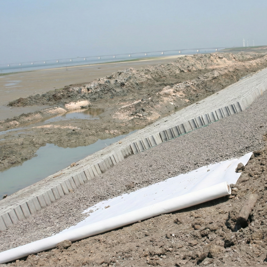 - Protección contra punzonamiento: Actúa como capa amortiguadora para proteger geomembranas impermeables contra daños causados por piedras o irregularidades del terreno.