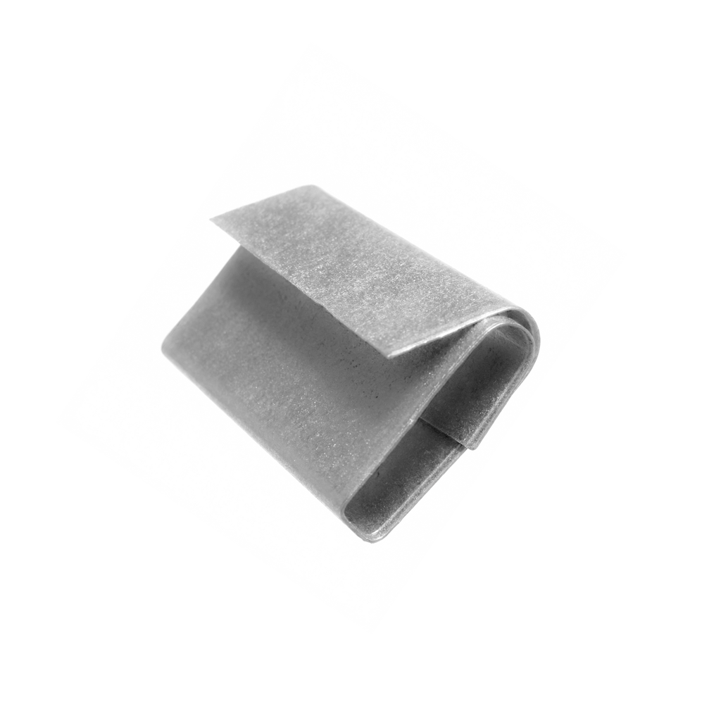 Su diseño interior texturizado o con relieve permite un "mordido" eficaz sobre el plástico, asegurando que el zuncho no se deslice una vez presionado con la herramienta selladora. Es la solución estándar para embalaje industrial, mudanzas y paletización segura.